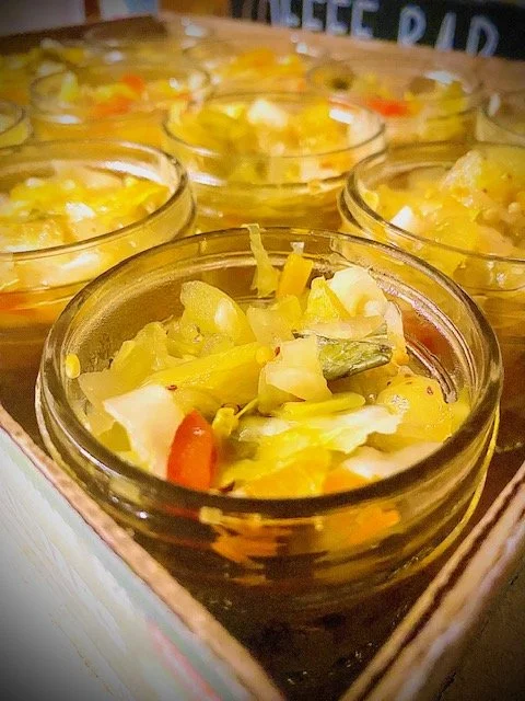 Remove the pot from heat and let the chow-chow cool to room temperature. Transfer to clean glass jars or airtight containers. Pour the brine over the vegetables, making sure they’re fully submerged.